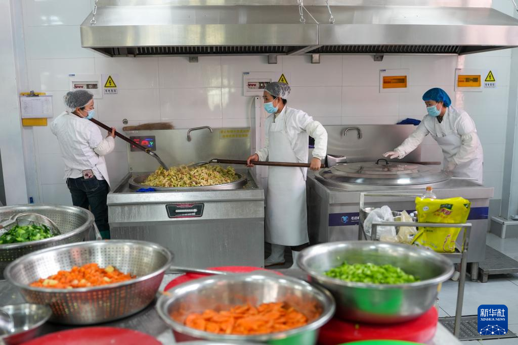 16日1月,幼学餐厅内戴庙镇核心,事务职员正在烹造午餐从学生家长中聘请的。者 朱峥 新华社记摄
