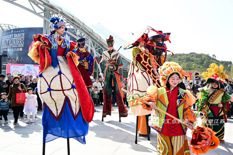 23日2月,姑苏狮山文明广场蕃昌开演《梦唐录》高跷巡游演出正在,受守旧文明的魅力让市民陶醉式感。视觉江苏网供管钰楠 摄 图